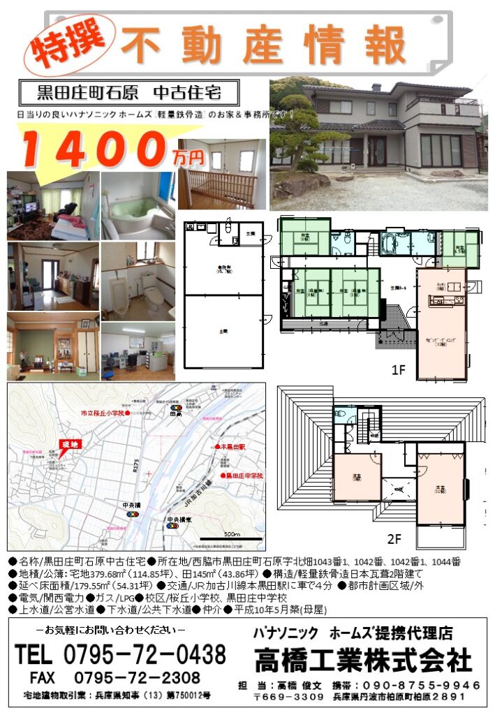 黒田庄町石原にて、パナソニックホームズの中古住宅がでました!