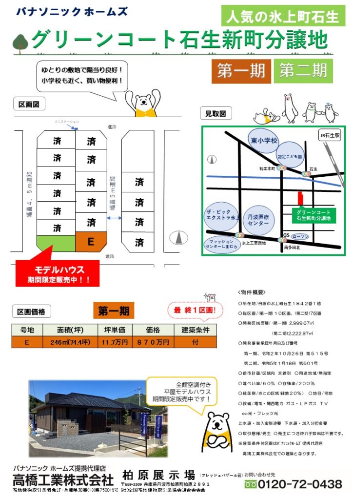 グリーンコート石生新町分譲地好評受付中! 氷上町東小学校、丹波医療センター、ザ・ビッグエクストラなどの施設が近くにあり 生活しやすい分譲地です!仲介手数料不要! 東小学校区で土地をお探しの方はぜひご検討下さい! 追記:最終1区画+モデルハウスのみとなりました! 角地で日当たり良好な区域です!