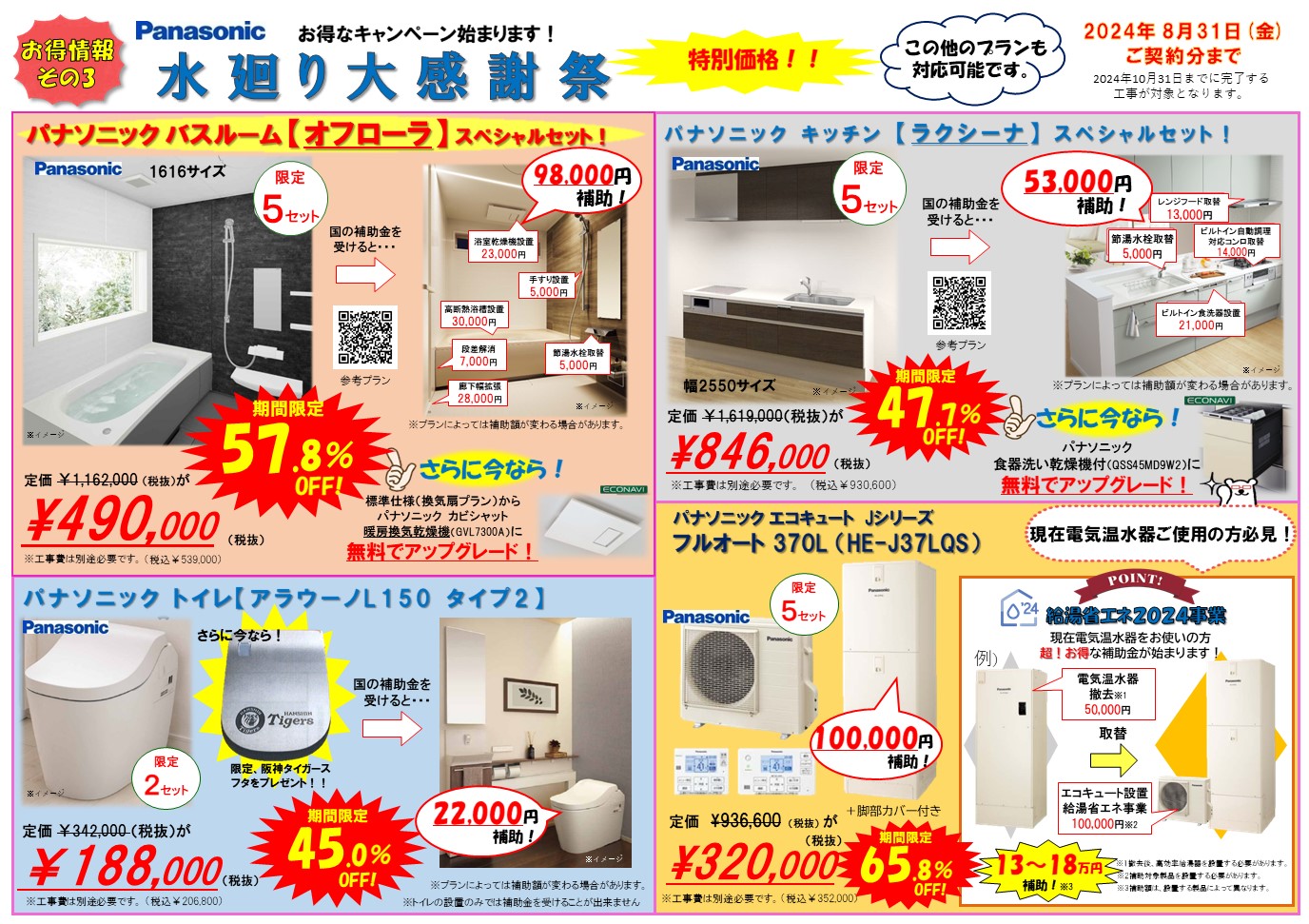 この度、期間限定でハッピーリフォームキャンペーンを開催することになりました!! 税抜50万円以上のリフォーム工事のご契約で商品券プレゼントや、パナソニックの水まわり設備がお求め安くなっていたりと、ご自宅のリフォームをお考えの方は今がチャンスです! そして今ならなんと、国の補助金を活用することで、更にお得にリフォームが出来ます! この機会に是非ご検討ください! ※キャンペーンは、8/31までにご契約いただき、10/31までに工事が完了するものが対象となります。ご了承ください。